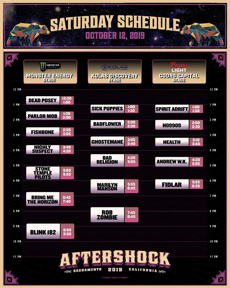Aftershock 2024 Time Schedule. California's biggest rock festival storms into sacramento with a powerful lineup of rock and metal favorites. $326.00 ($270.99 pass price + $55.01 fees) each level has.